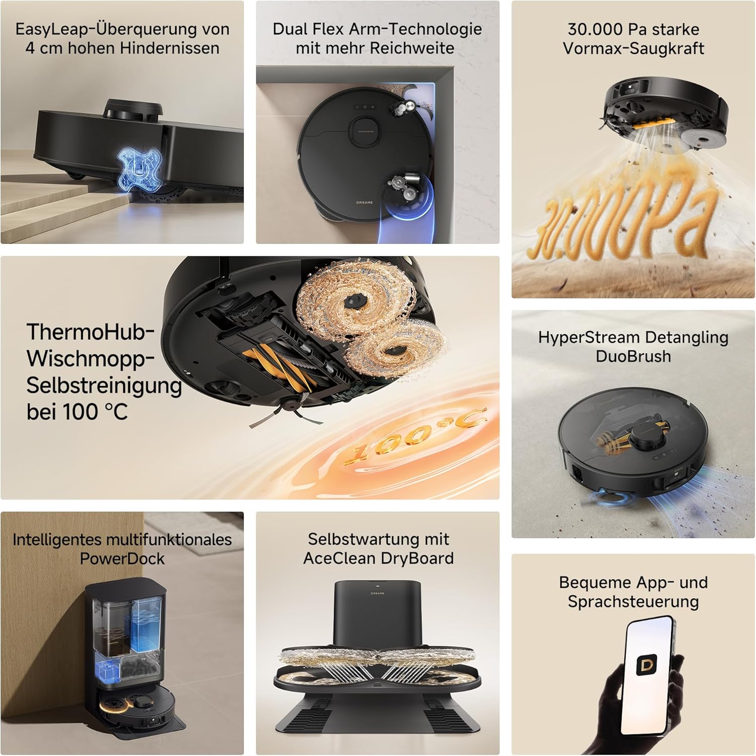 • Besonderes Merkmal: ThermoHub-Wischmopp-Selbstreinigung, Automatische Leerung, Hindernisüberwindung, Fallvermeidung