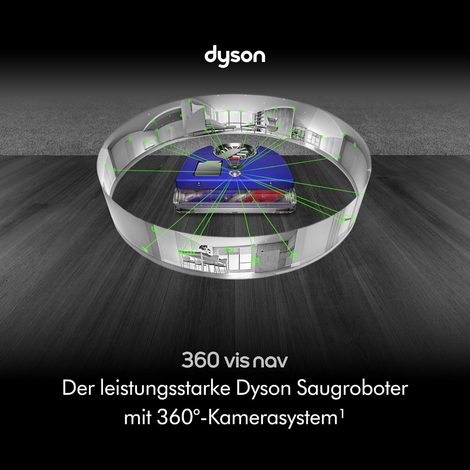 Dyson 360 Vis Nav Saugroboter, Vollbreite Bürste, für alle Bodenarten, Blau/Nickel